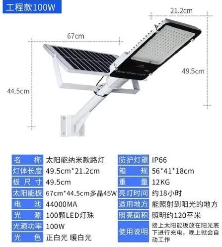 僅僅只是在外殼上標了100W,其他的配置(44Ah容量的電池、多晶45W的太陽能板)竟然比規范的廠家30W的配置還要低!