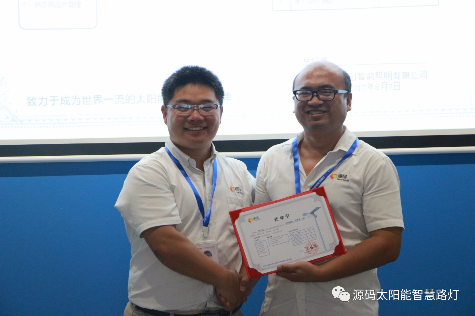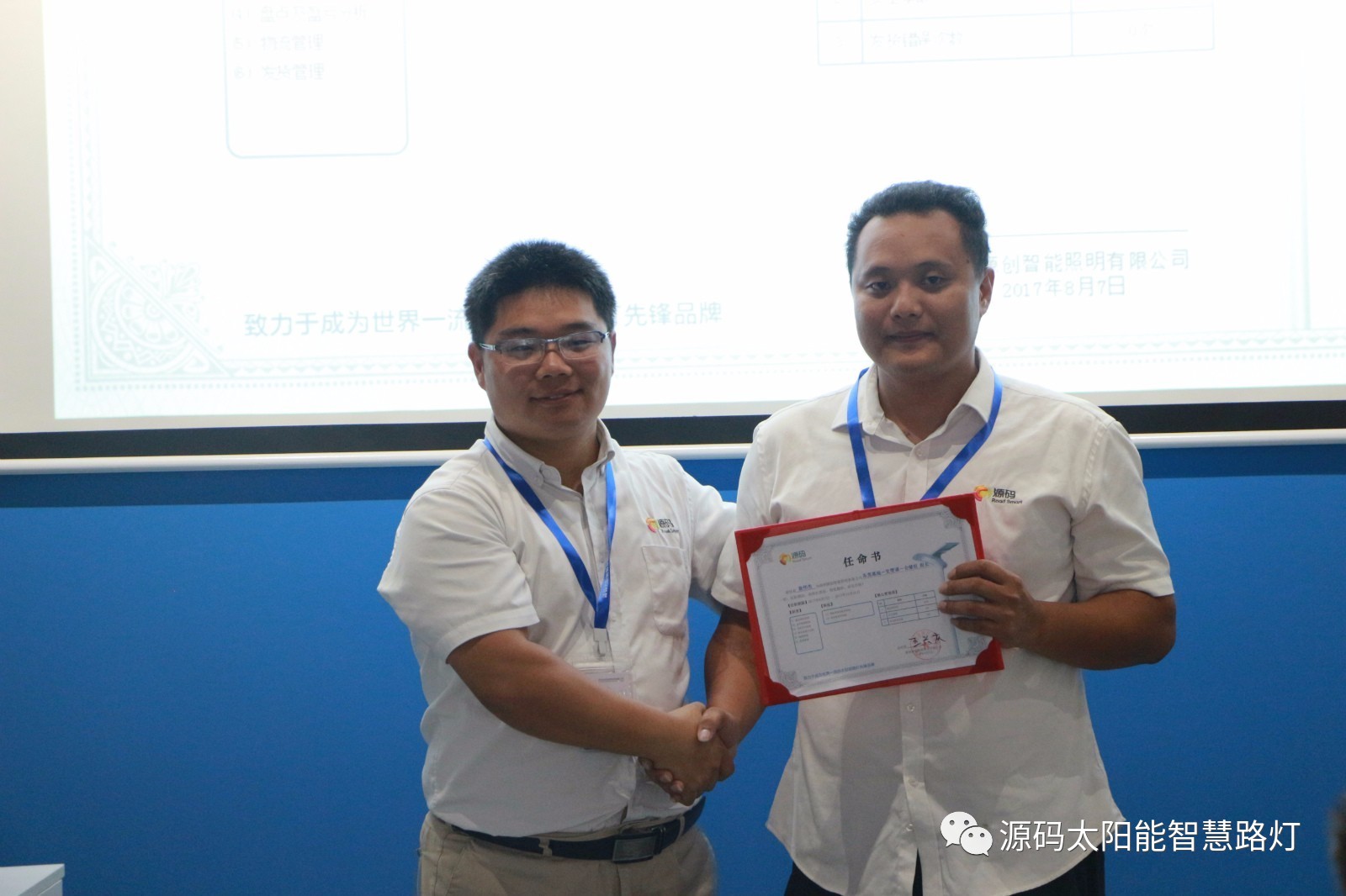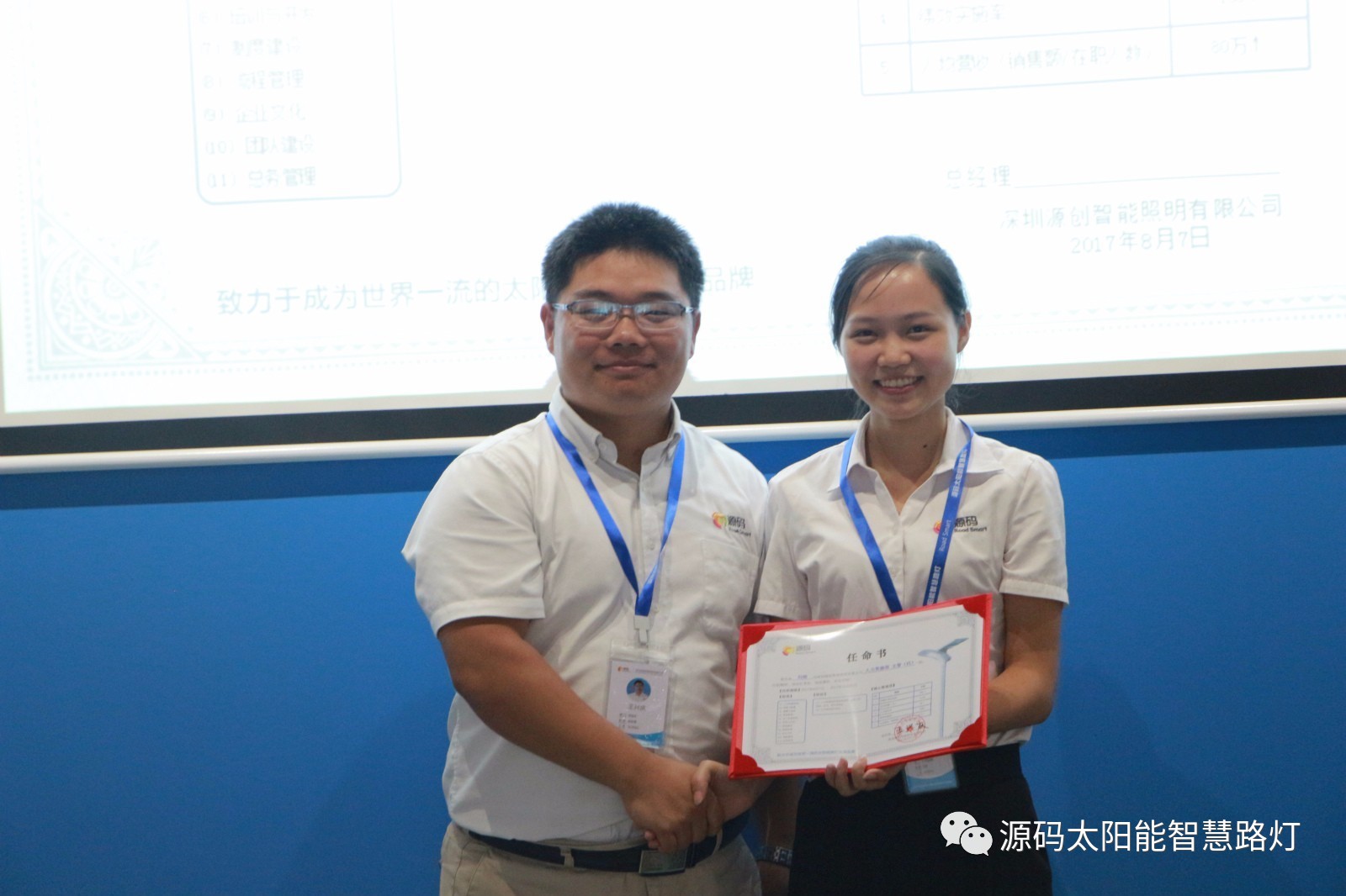 其次,由源碼人事主管劉柳女士宣讀任命書,源碼董事長王興慶先生為被任命人頒發任命書,此次大會共計任命干部十一名,任期皆為2017年8月7日至2017年12月31日。