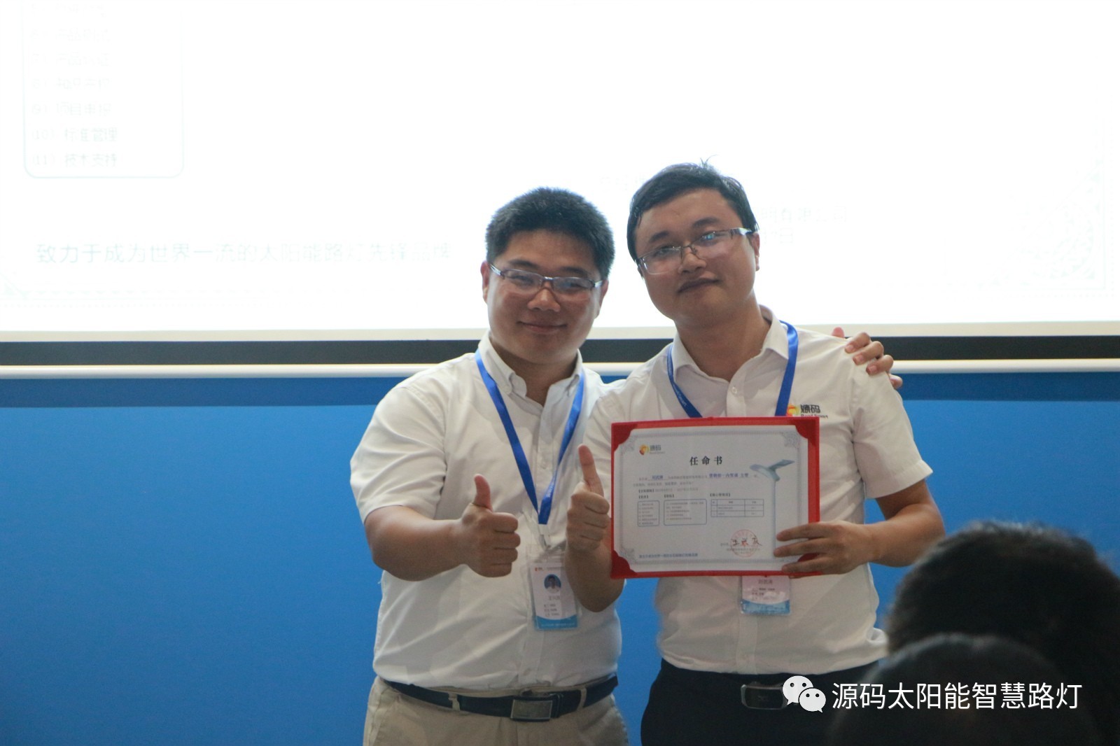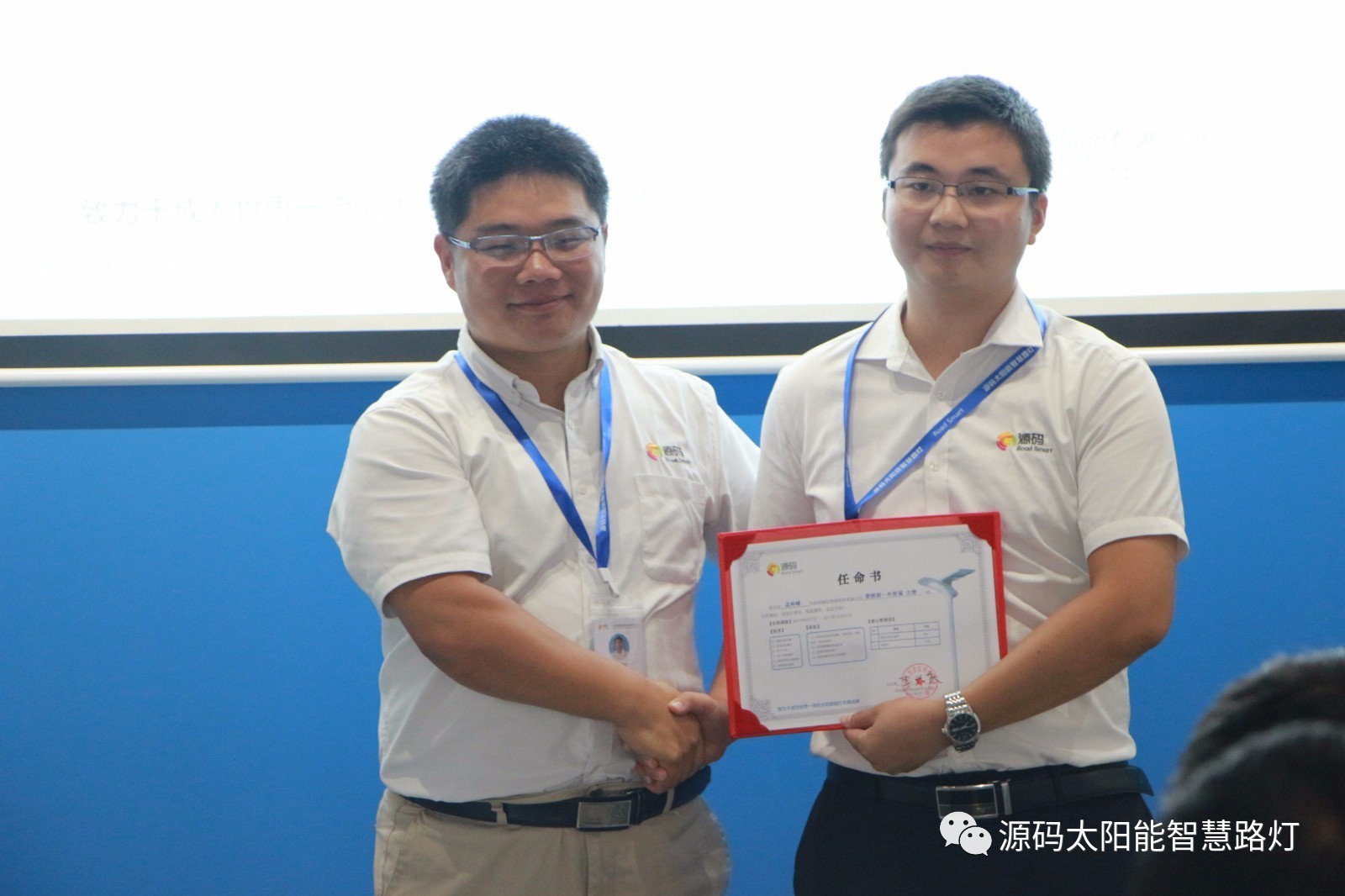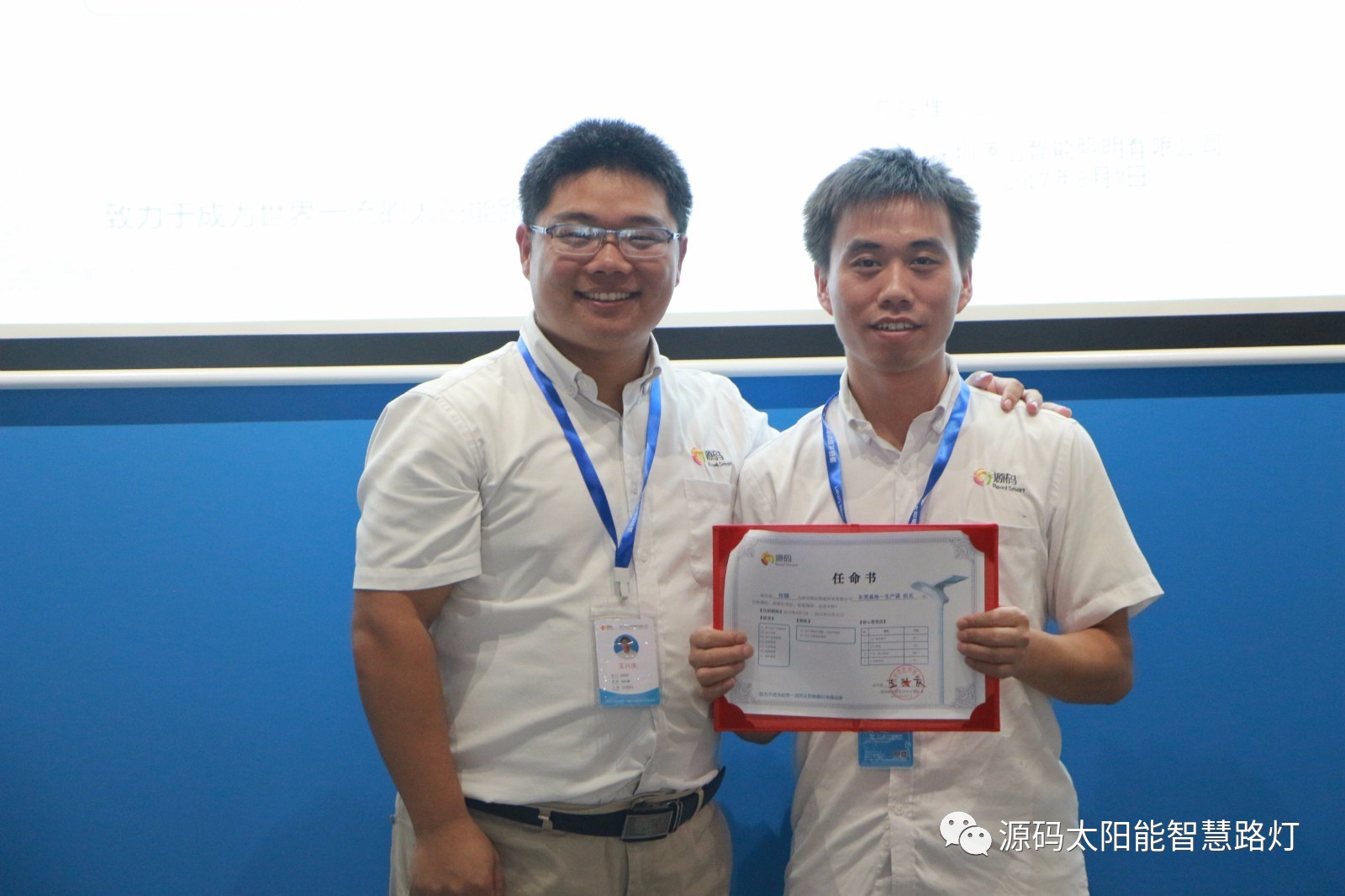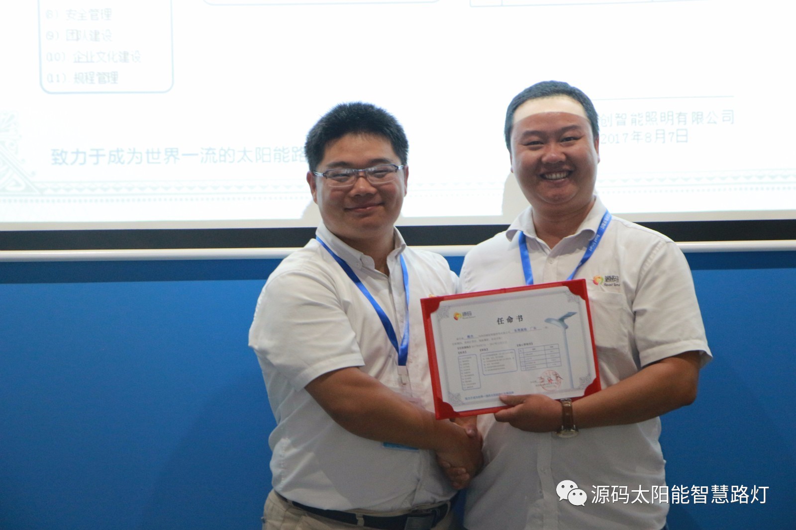 其次,由源碼人事主管劉柳女士宣讀任命書,源碼董事長王興慶先生為被任命人頒發任命書,此次大會共計任命干部十一名,任期皆為2017年8月7日至2017年12月31日。