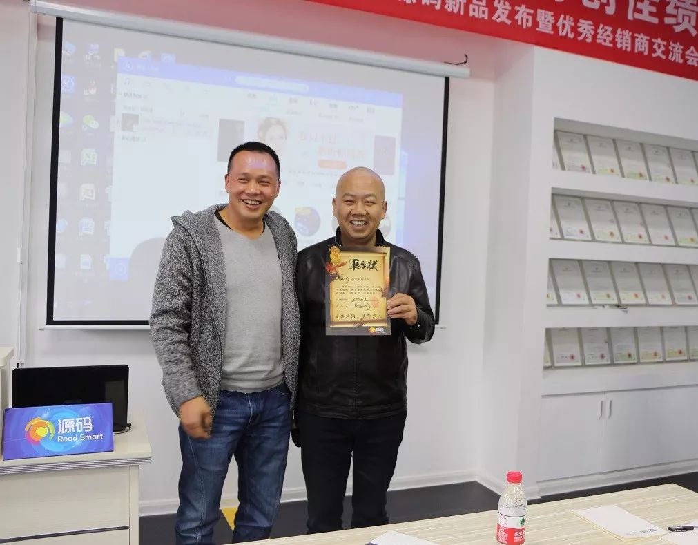 “好戲陸續(xù)上演”,項(xiàng)總攜手孫總為2017年度的江西優(yōu)秀經(jīng)銷商頒發(fā)了源碼年度風(fēng)云榜榮譽(yù)獎(jiǎng)牌,表彰那些在源碼運(yùn)營(yíng)過程中積極付出的經(jīng)銷商朋友。