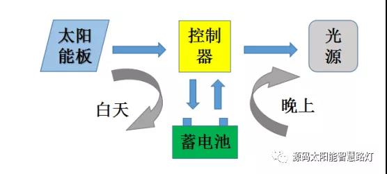 太陽(yáng)能路燈的主要組成部分:太陽(yáng)能板、蓄電池、控制器、光源、燈桿。