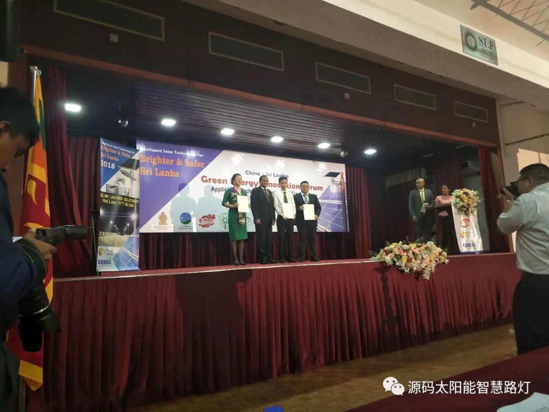 12月18日,在斯里蘭卡科倫坡舉行中國-斯里蘭卡能源創(chuàng)新論壇及捐贈儀式,云南省綠色能源行業(yè)協(xié)會攜源碼太陽能路燈為斯里蘭卡捐贈太陽能智慧路燈130盞,斯里蘭卡政府代表對云南省綠色能源行業(yè)協(xié)會及源碼太陽能路燈表示衷心地感謝,斯里蘭卡總統(tǒng)秘書Udaya R.Seneviratne先生現(xiàn)場為云南省綠色能源行業(yè)協(xié)會及源碼太陽能路燈頒發(fā)感謝證書,此外,斯里蘭卡能源部部長秘書等其他政府機構(gòu)也頒發(fā)了感謝證書。