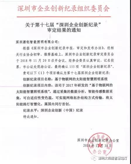 其中深圳源創(chuàng)智能照明有限公司(以下簡(jiǎn)稱(chēng)“源碼太陽(yáng)能路燈”),憑借在太陽(yáng)能路燈創(chuàng)新技術(shù)的突出優(yōu)勢(shì)獲得“深圳企業(yè)創(chuàng)新(中國(guó))紀(jì)錄”獎(jiǎng)。該記錄將物聯(lián)網(wǎng)技術(shù)運(yùn)用于太陽(yáng)能路燈,有效地解決路燈的管理、維護(hù)問(wèn)題,賦予太陽(yáng)能路燈”智慧“屬性,在行業(yè)內(nèi)屬領(lǐng)先水平,屬?lài)?guó)內(nèi)同行首創(chuàng)。