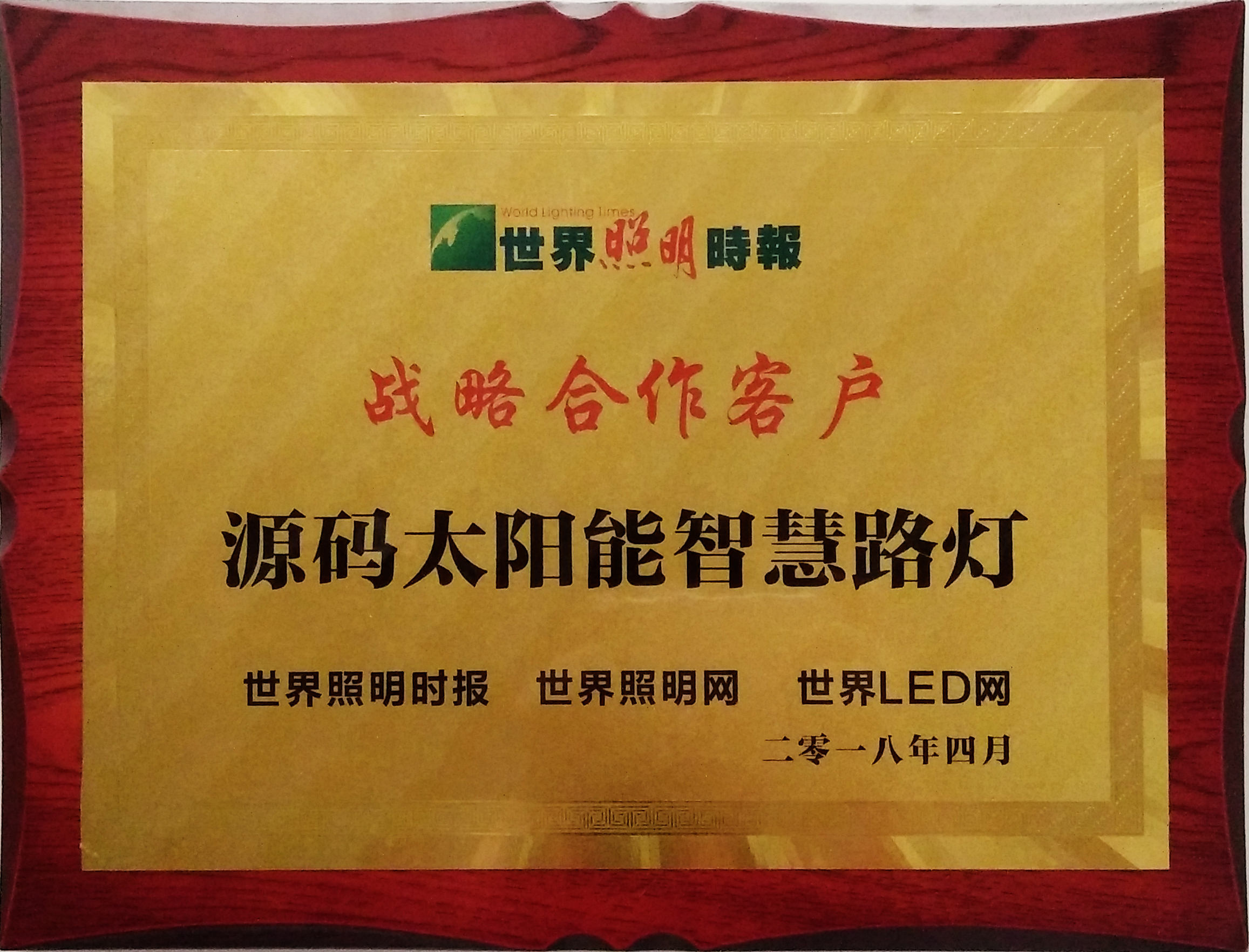 2018年4月,源碼太陽能智慧路燈成為世界照明時報戰(zhàn)略合作客戶。