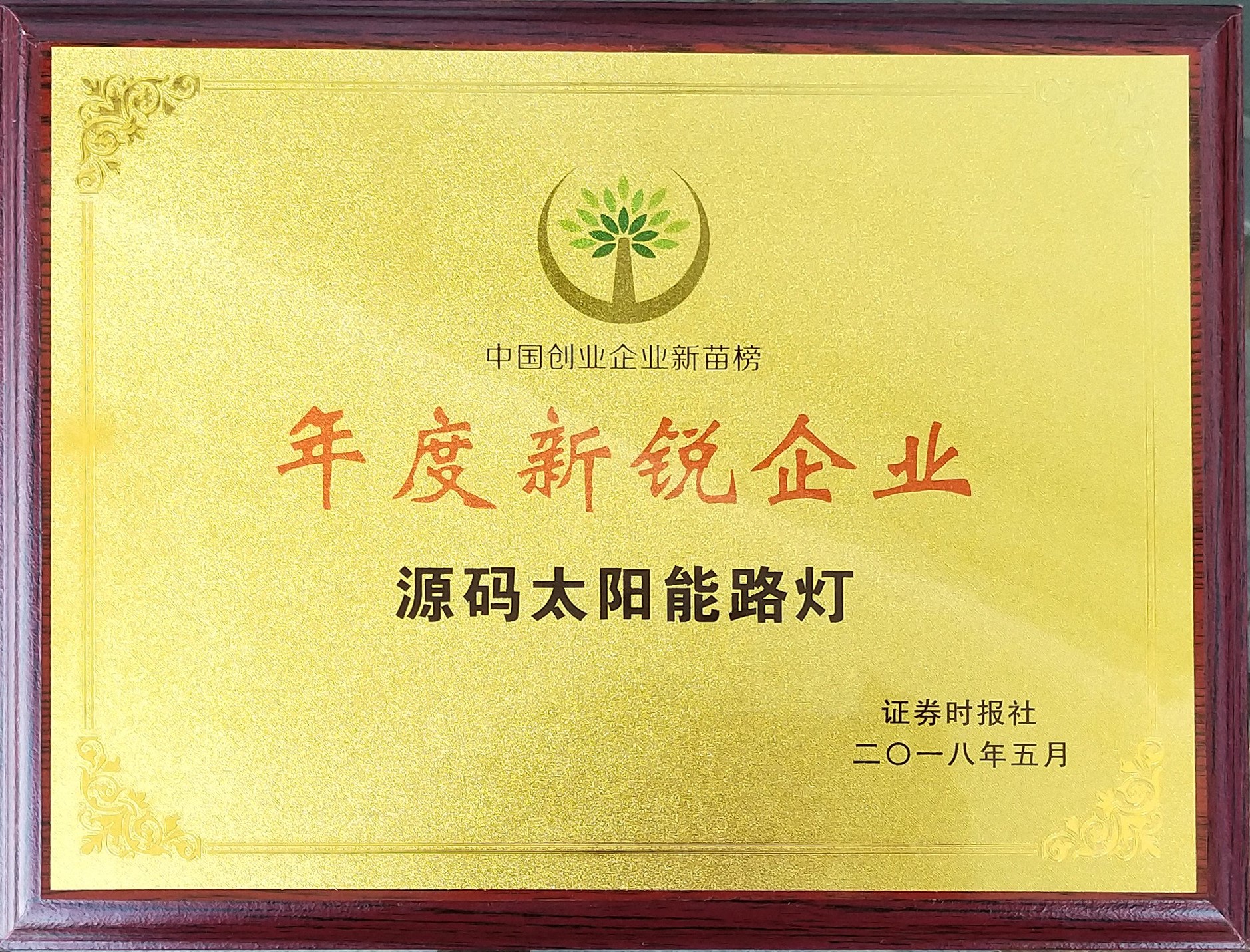 62018中國創(chuàng)業(yè)企業(yè)新苗榜"年度新銳企業(yè)"5月18日,由證券時報主辦,深交所、上交所及港交所支持的第六屆中國創(chuàng)業(yè)投資高峰論壇在深圳隆重舉行。在此次論壇上,源碼太陽能路燈榮獲“年度新銳企業(yè) ”。