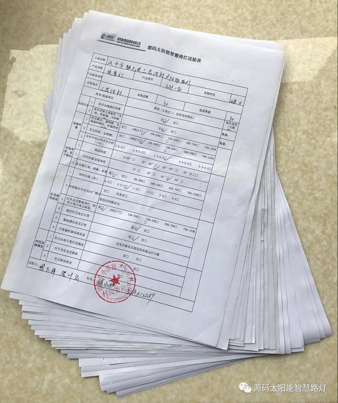 此次巡檢任務(wù)繁重,區(qū)域面積廣,共去了陜西省的五個(gè)市,七個(gè)縣,四個(gè)區(qū)進(jìn)行巡檢。每次巡檢完陽(yáng)光服務(wù)隊(duì)都會(huì)找當(dāng)?shù)卮迕窳私庠创a太陽(yáng)能路燈的運(yùn)行情況,并了解各地環(huán)境、氣候等方面的大數(shù)據(jù)信息。此外,還會(huì)找到當(dāng)?shù)氐拇逦顚?xiě)源碼的巡檢表,對(duì)巡檢情況做評(píng)判。