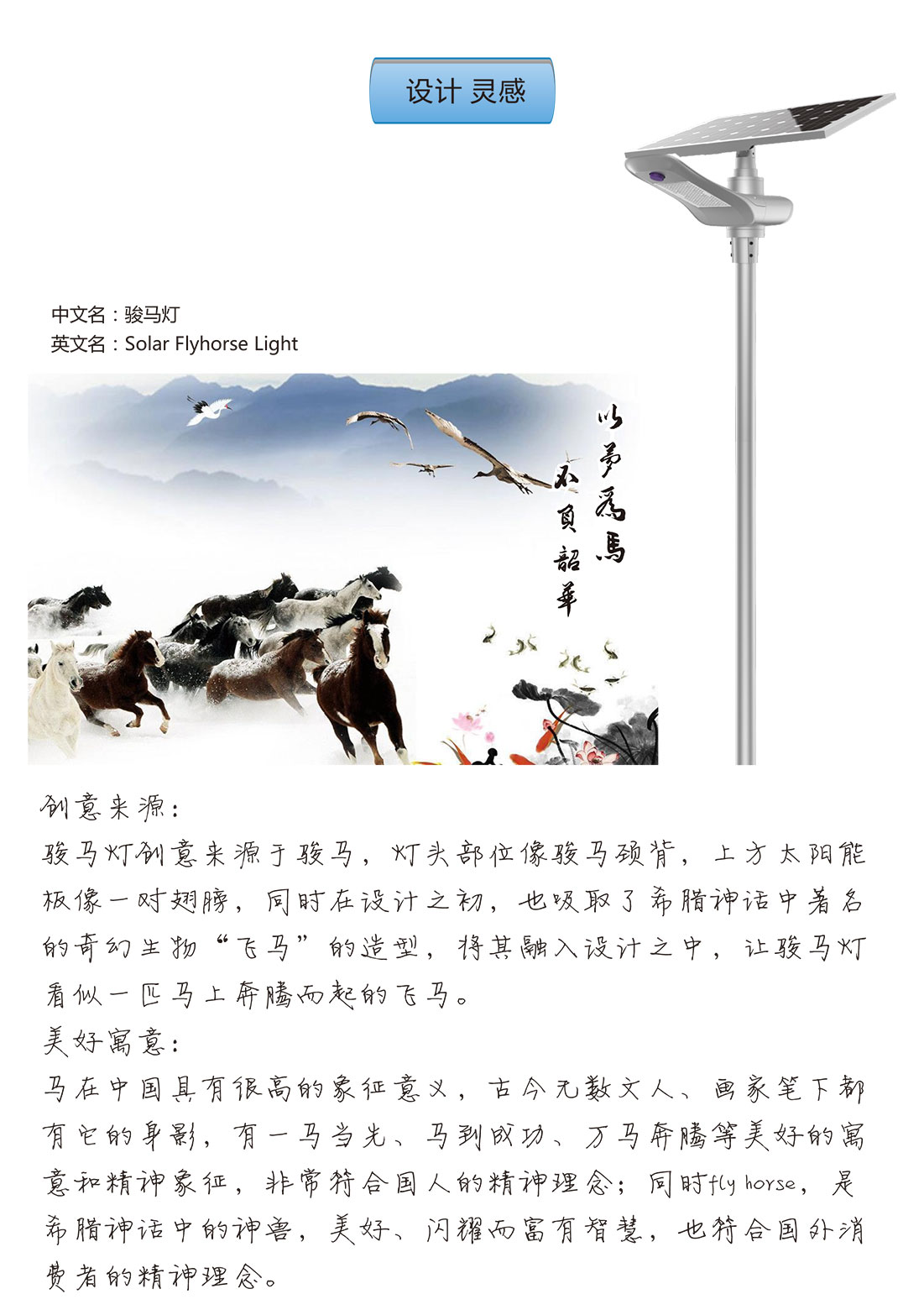 駿馬燈屬于中高端定位的中大功率太陽能智慧路燈,被廣泛應用于城市或鄉鎮主干道或次干道,以及工業園區、廣場等場景。